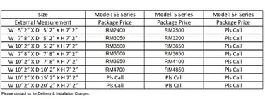 SE Series price inclusive of Termite Resistance Base, Aluminium Frame Door, PVC Vinyl Carpet (Linoleum) , Latch Lock, Stainless Steel Hinged