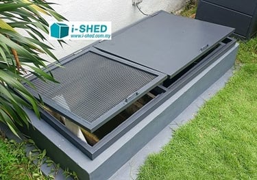 SP Series inclusive of Termite Resistance Base, Large Aluminium Frame Door, 2pcs x 6'ft Aluminium Louvre Ventilation, PVC Vinyl Carpet (Linoleum) , Latch Lock, Stainless Steel Hinged